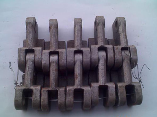 当往复炉排行至尾部向下转入空程以后,便依靠自重依次翻转过来,倒挂在夹板上,能自动清除灰渣,并获得冷却。各相邻链条之间,用拉杆与套管相连,使链条之间的距离保持不变.。